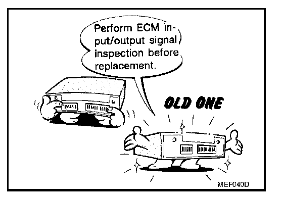 - Before replacing ECM, perform ECM Terminals and Reference Value inspection and make sure ECM functions properly. Refer to EC-116, "ECM Terminals and Reference Value". Pinout Values and Diagnostic Parameters