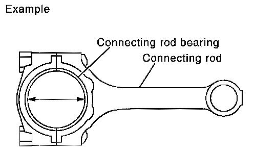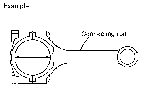 ^ Install the connecting rod cap without the connecting rod bearing installed. After tightening the connecting rod bolt to the specified torque, measure the connecting rod large end inside diameter. Refer to "ASSEMBLY".