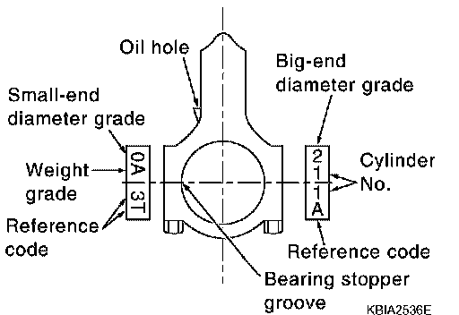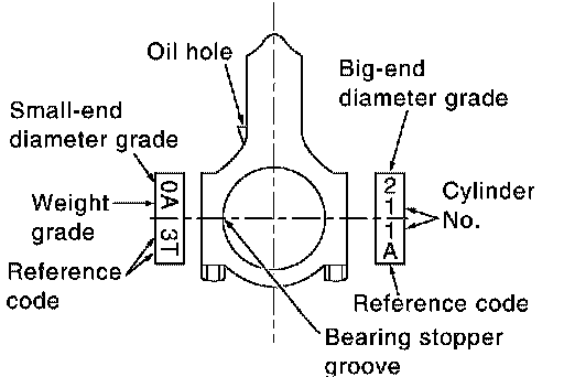 NOTE: The connecting rod small end grade and piston pin hole (piston pin) grade are provided only for the parts installed at the plant. For service parts, no grades can be selected. (Only 0 grade is available.)