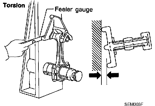 CRANKSHAFT END PLAY^ Move the crankshaft fully forward and backward and measure the clearance between the thrust bearings and crankshaft arm using suitable tool.