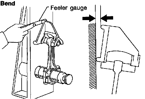 ^ Measure side clearance between the connecting rod and crankshaft arm using suitable tool.