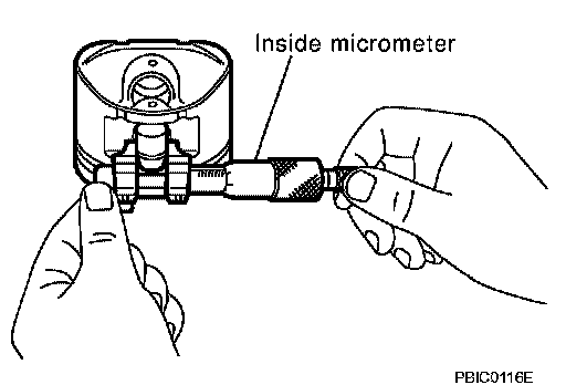 ^ Measure diameter of piston pin hole using suitable tool.
