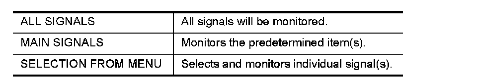 4. When "SELECTION FROM MENU" is selected, touch items to be monitored. When "ALL SIGNALS" is selected, all the items will be monitored. When "MAIN SIGNALS" is selected, predetermined items are monitored.