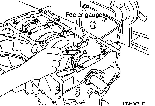CONNECTING ROD SIDE CLEARANCE^ Measure the side clearance between connecting rod and crankshaft arm with a feeler gauge.
