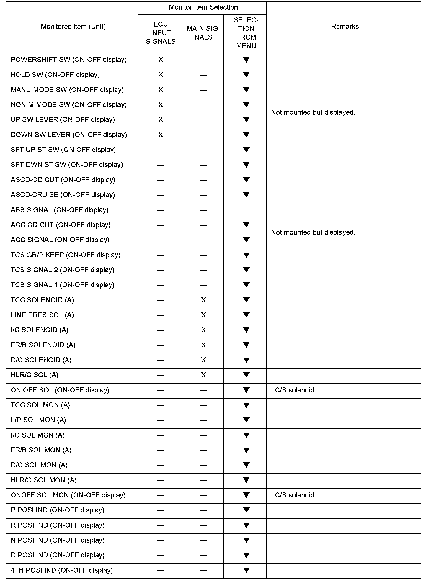 NOTE: When malfunction is detected, CONSULT-II performs REAL-TIME DIAGNOSIS. Also, any malfunction detected while in this mode will be displayed at real time.