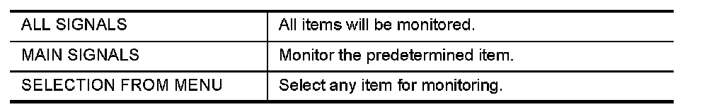 3. Touch the required monitoring item on "SELECTION FROM MENU". In "ALL SIGNALS", all items are monitored. In "MAIN SIGNALS", predetermined items are monitored.