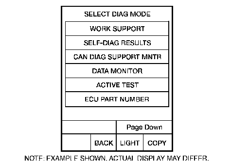 NOTE: When malfunction is detected, CONSULT-II performs "REAL-TIME DIAGNOSIS". Also, any malfunction detected while in this mode will be displayed at real time.