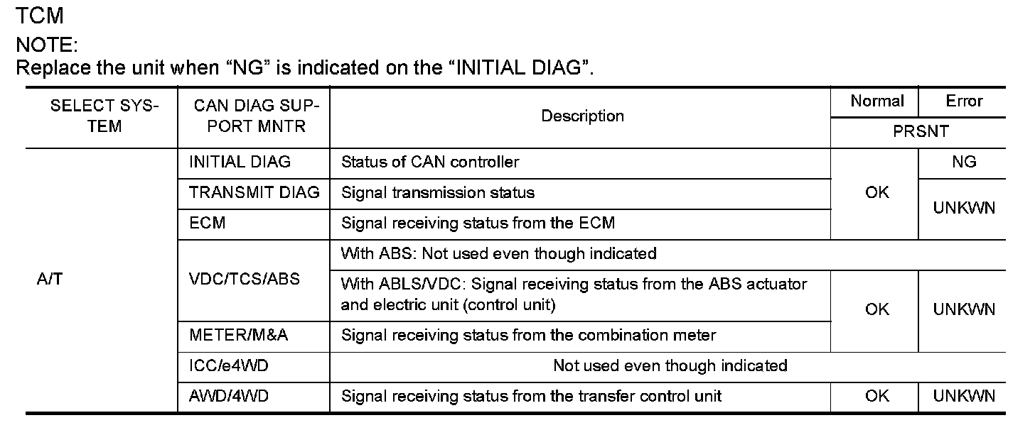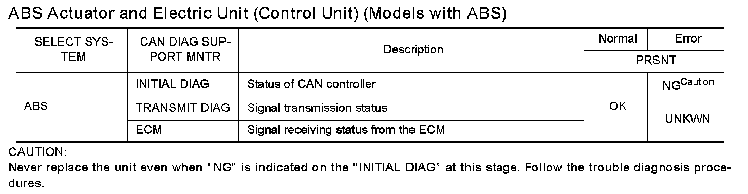 NOTE: Replace the unit when "NG" is indicated on the "INITIAL DIAG".