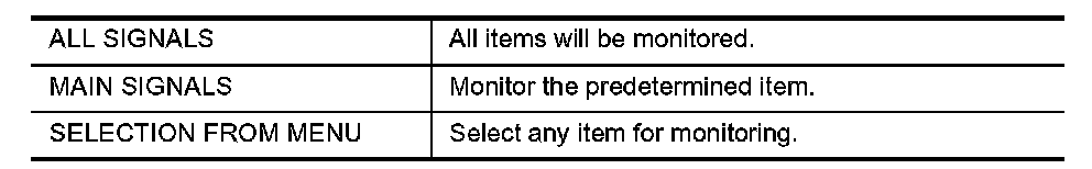 3. Touch the required monitoring item on "SELECTION FROM MENU". In "ALL SIGNALS", all items are monitored. In "MAIN SIGNALS", predetermined items are monitored.