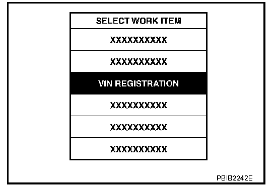 3. Select "VIN REGISTRATION" in "WORK SUPPORT" mode.