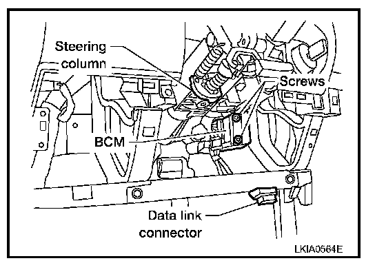 - When replacing the BCM, perform adjustment procedure for the steering angle sensor. Refer to BRC-11, "ADJUSTMENT OF STEERING ANGLE SENSOR NEUTRAL POSITION : Special Repair Requirement" (VDC/TCS/ABS) Testing and Inspection or BRC-131, "ADJUSTMENT OF STEERING ANGLE SENSOR NEUTRAL POSITION : Special Repair Requirement" (HDC/HSA/VDS/TCS/ABS). Testing and Inspection
