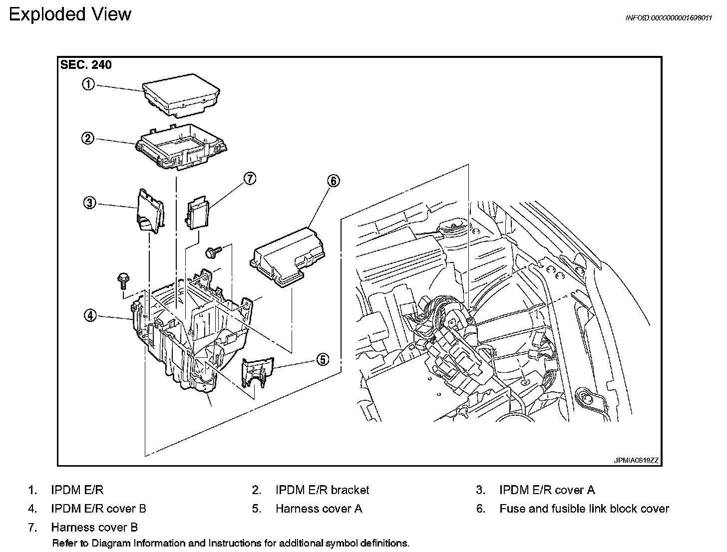 7. Unlock pawls of IPDM E/R cover A, harness cover A and harness cover B, remove them.