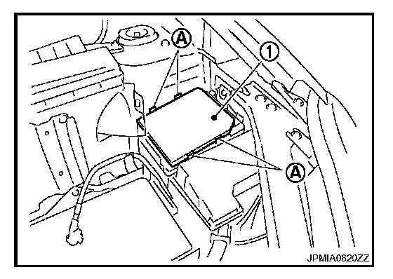 6. Unlock all pawls (A) of IPDM E/R bracket, and remove IPDM E/ R bracket (1).