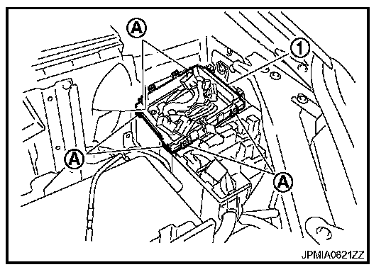 3. Remove IPDM E/R (1) while pushing and opening pawls (A).