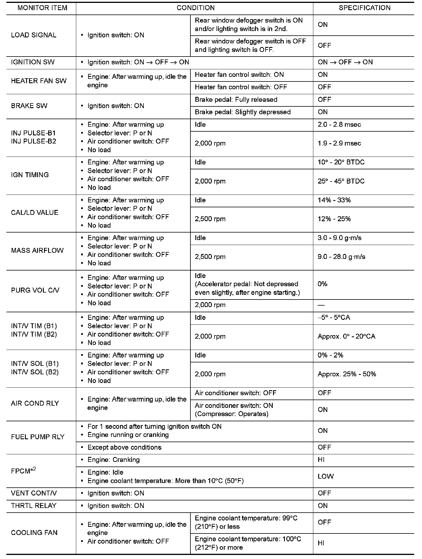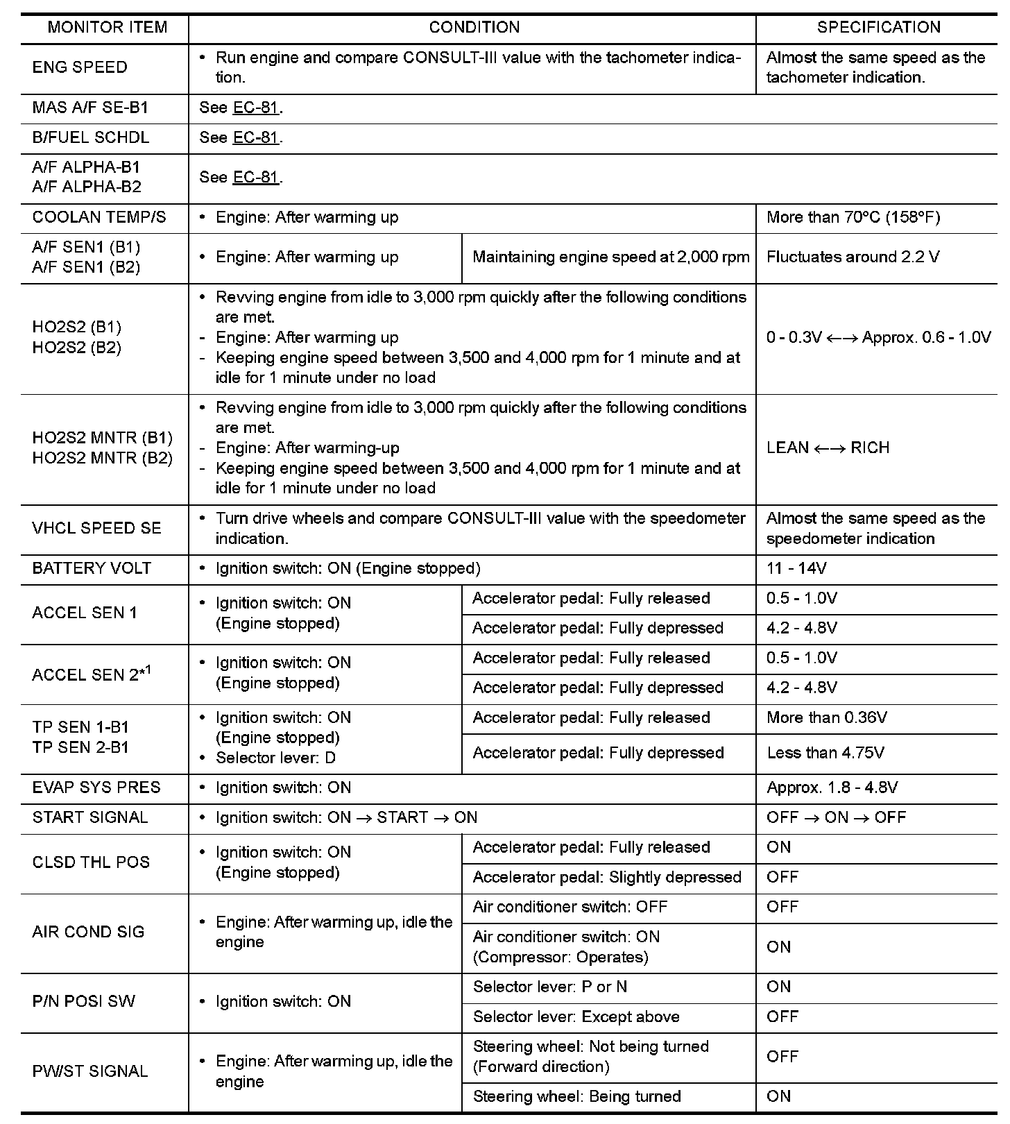 CONSULT-III Reference Value In Data Monitor Mode