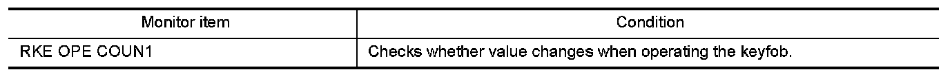 Check remote keyless entry receiver "RKE OPE COUN1" in Data Monitor mode with CONSULT-III.