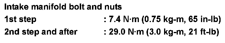 Intake manifold studs : 11.0 N.m (1.1 kg-m, 8 ft-lb)