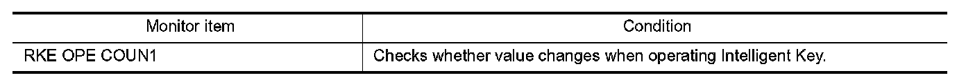Check remote keyless entry receiver ("RKE OPE COUN1") in Data Monitor mode with CONSULT-III.