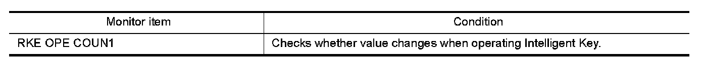 Check remote keyless entry receiver "RKE OPE COUN1" in Data Monitor mode with CONSULT-III.