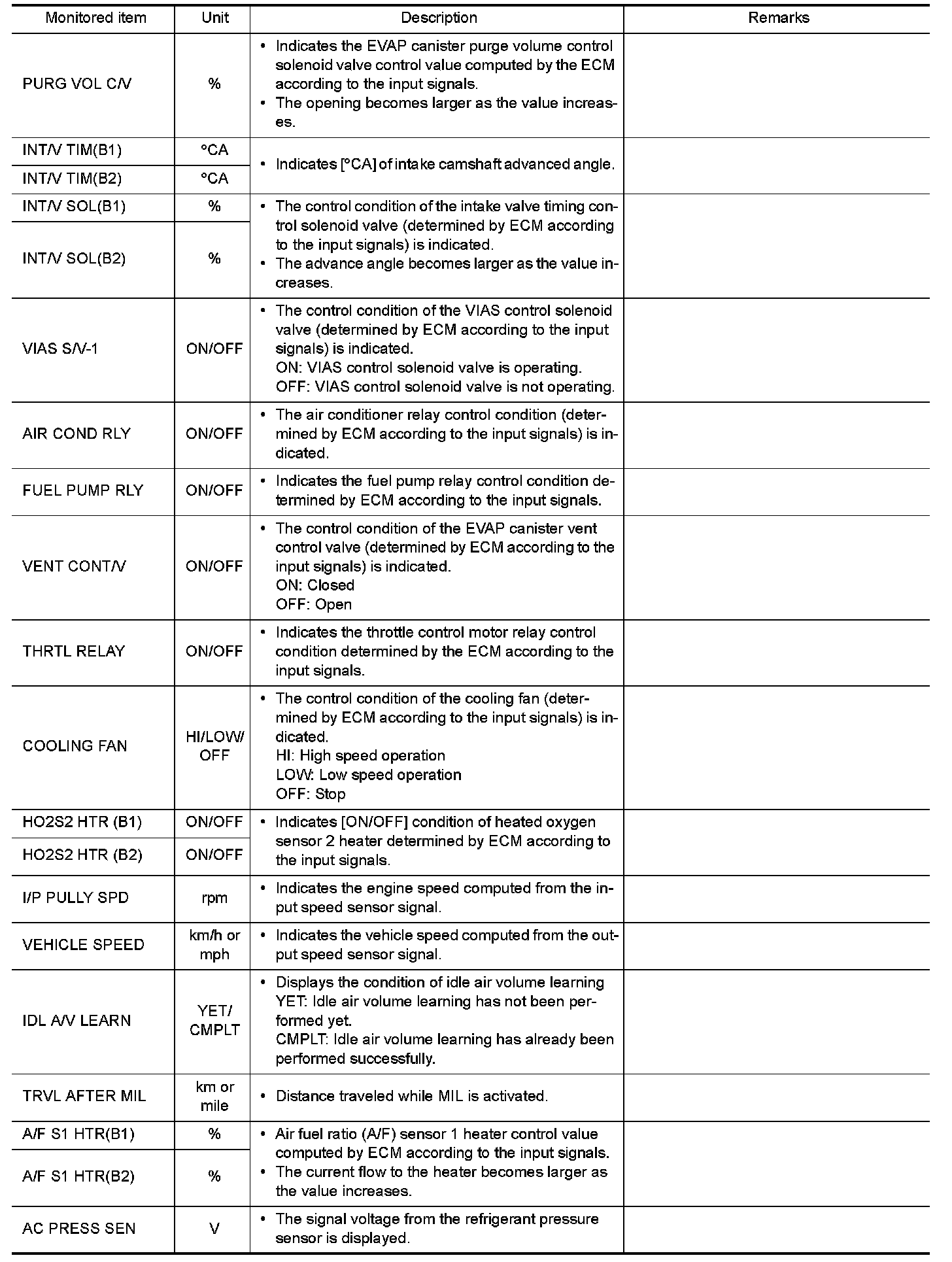 Regarding items of DTC and 1st trip DTC, Testing and Inspection.