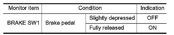 3. Check "BRAKE SW1" indication under the following conditions.
