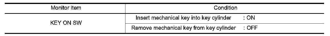 Check key switch ("KEY ON SW") in "Data Monitor" mode with CONSULT-III. With Intelligent Key System.