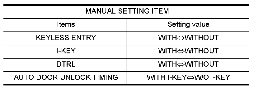 Depending on CONSULT-III software version being used, some or all of the write configuration items shown in the following configuration lists may be displayed. If an item does not display on the CONSULT-III "WRITE