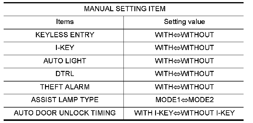 Depending on CONSULT-III software version being used, some or all of the write configuration items shown in the following configuration lists may be displayed. If an item does not display on the CONSULT-III "WRITE