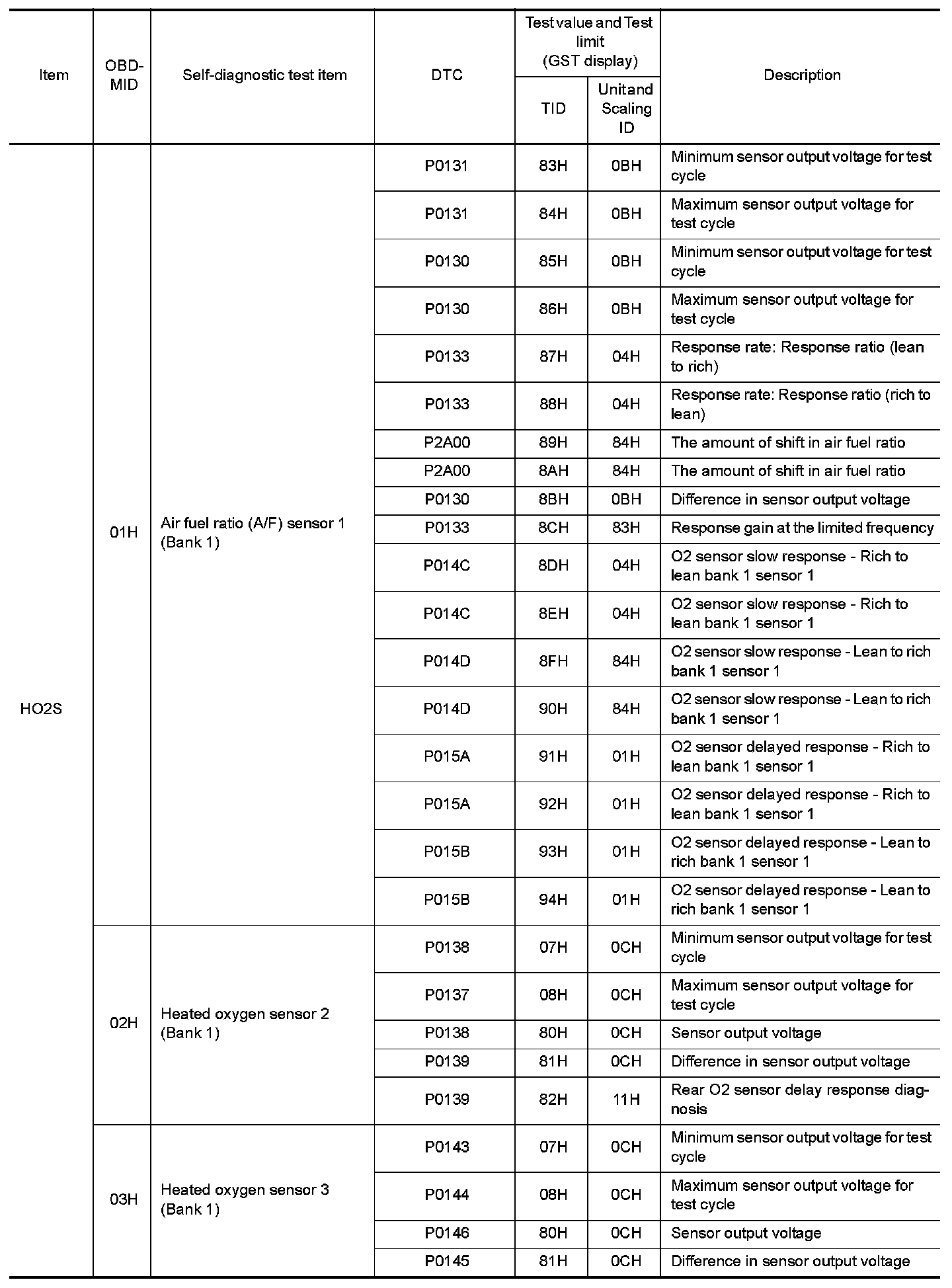 The following is the information specified in Service $06 of SAE J1979/ISO 15031-5.