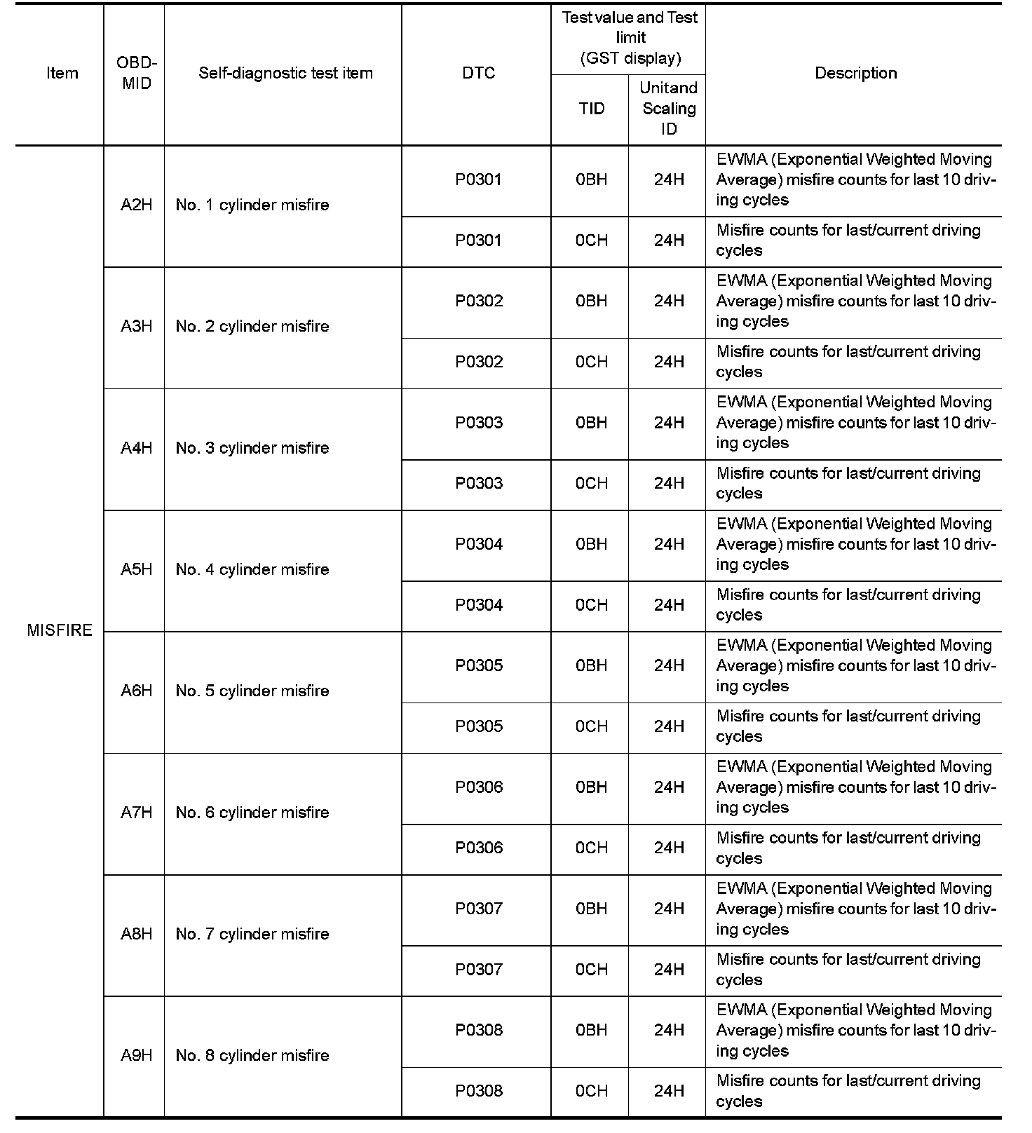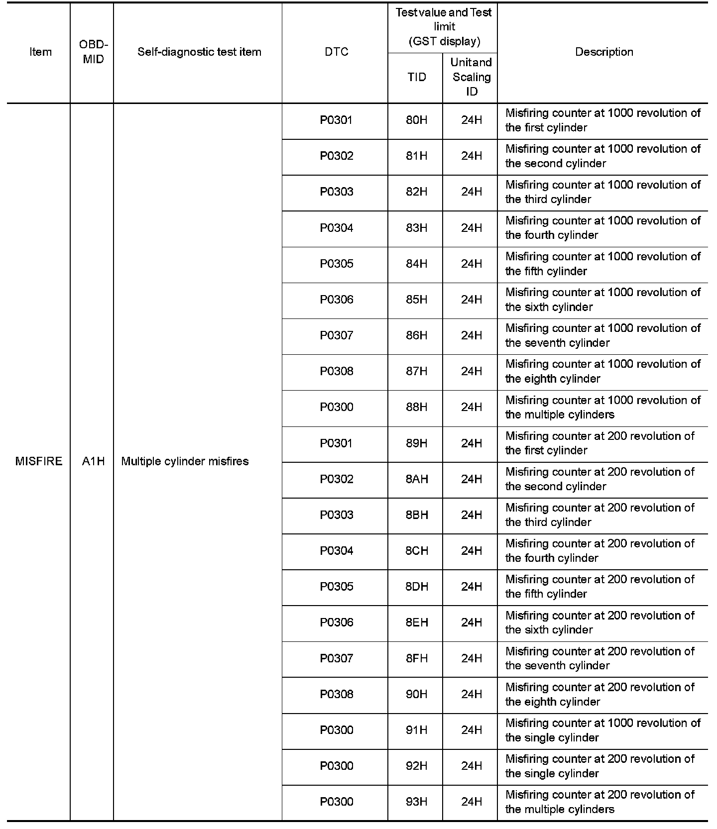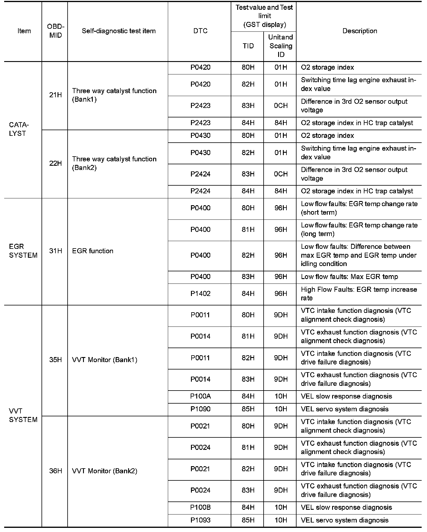 These data (test value and test limit) are specified by On Board Monitor ID (OBDMID), Test ID (TID), Unit and