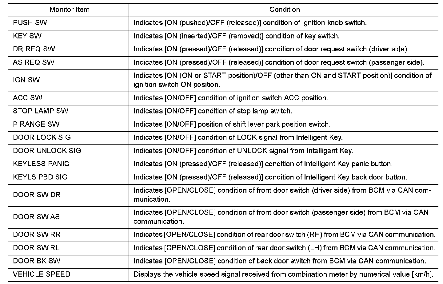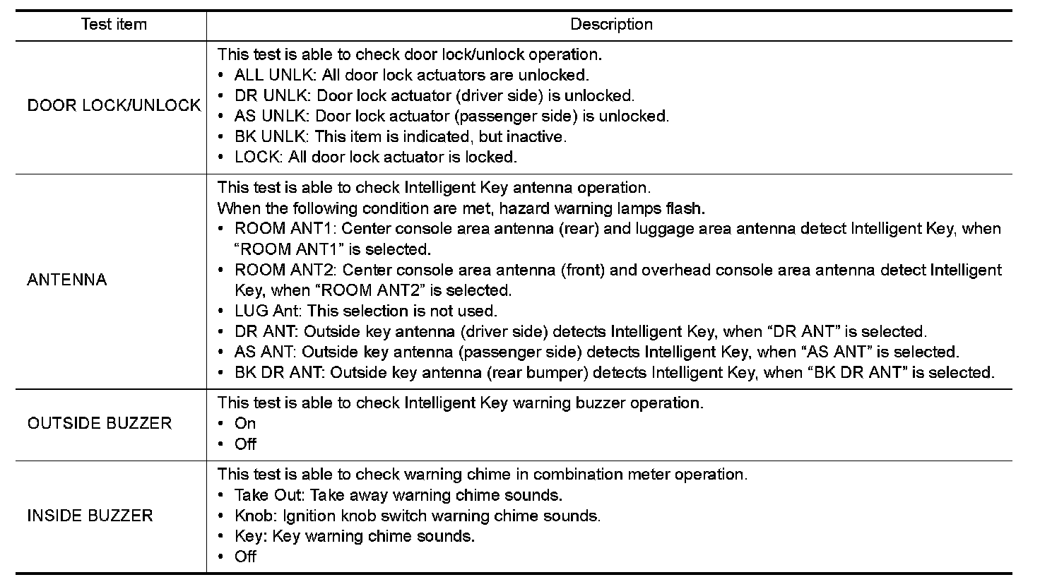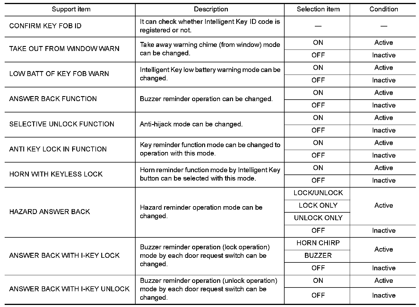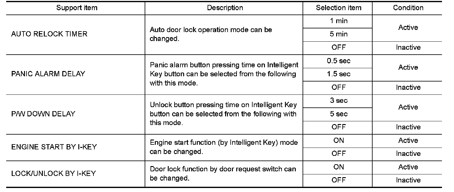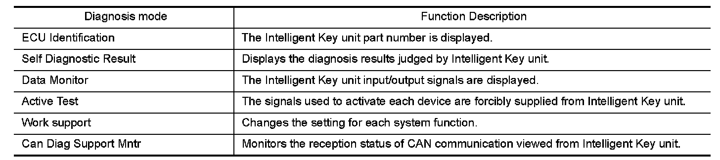 CONSULT performs the following functions via CAN communication with Intelligent Key unit.