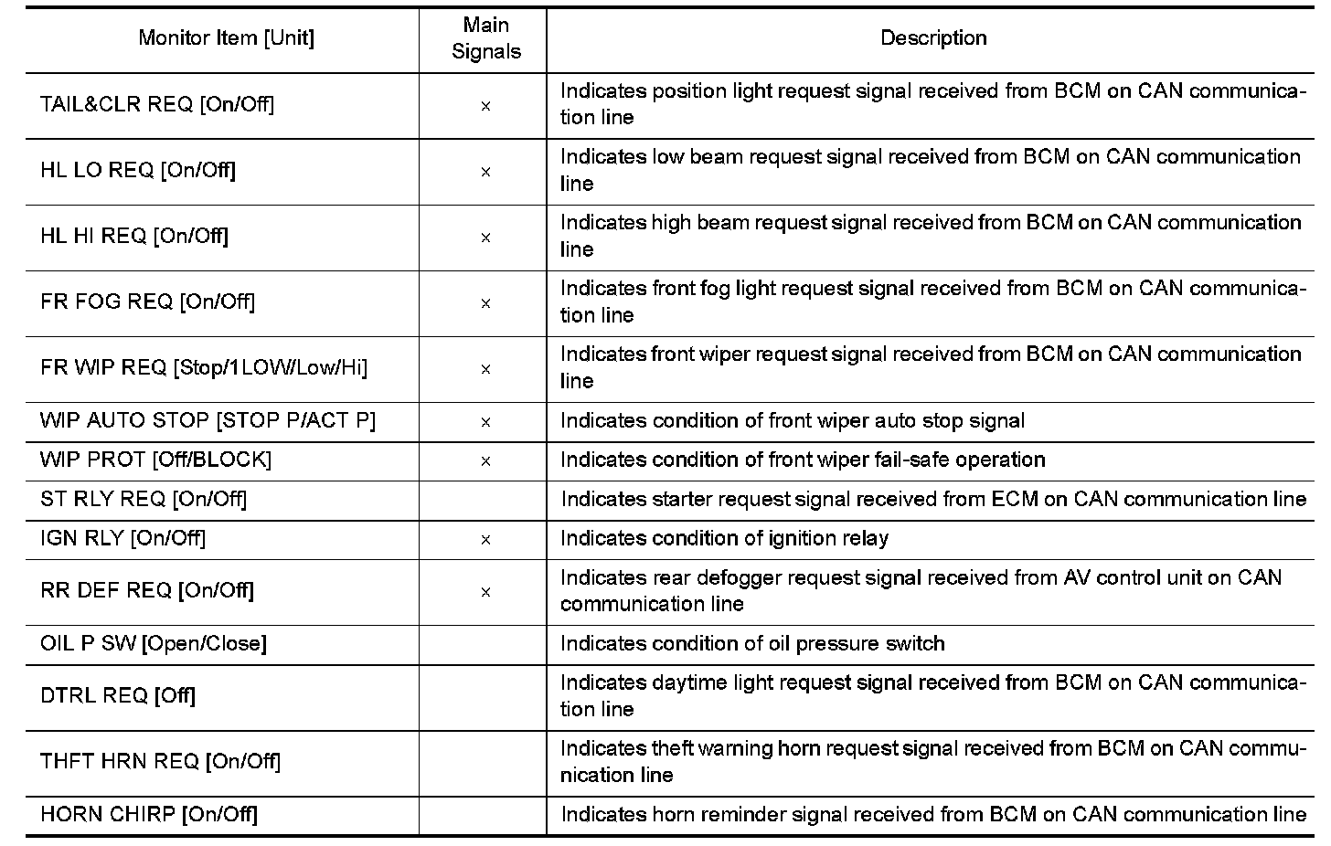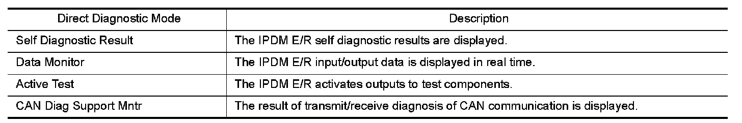 CONSULT performs the following functions via CAN communication with IPDM E/R.