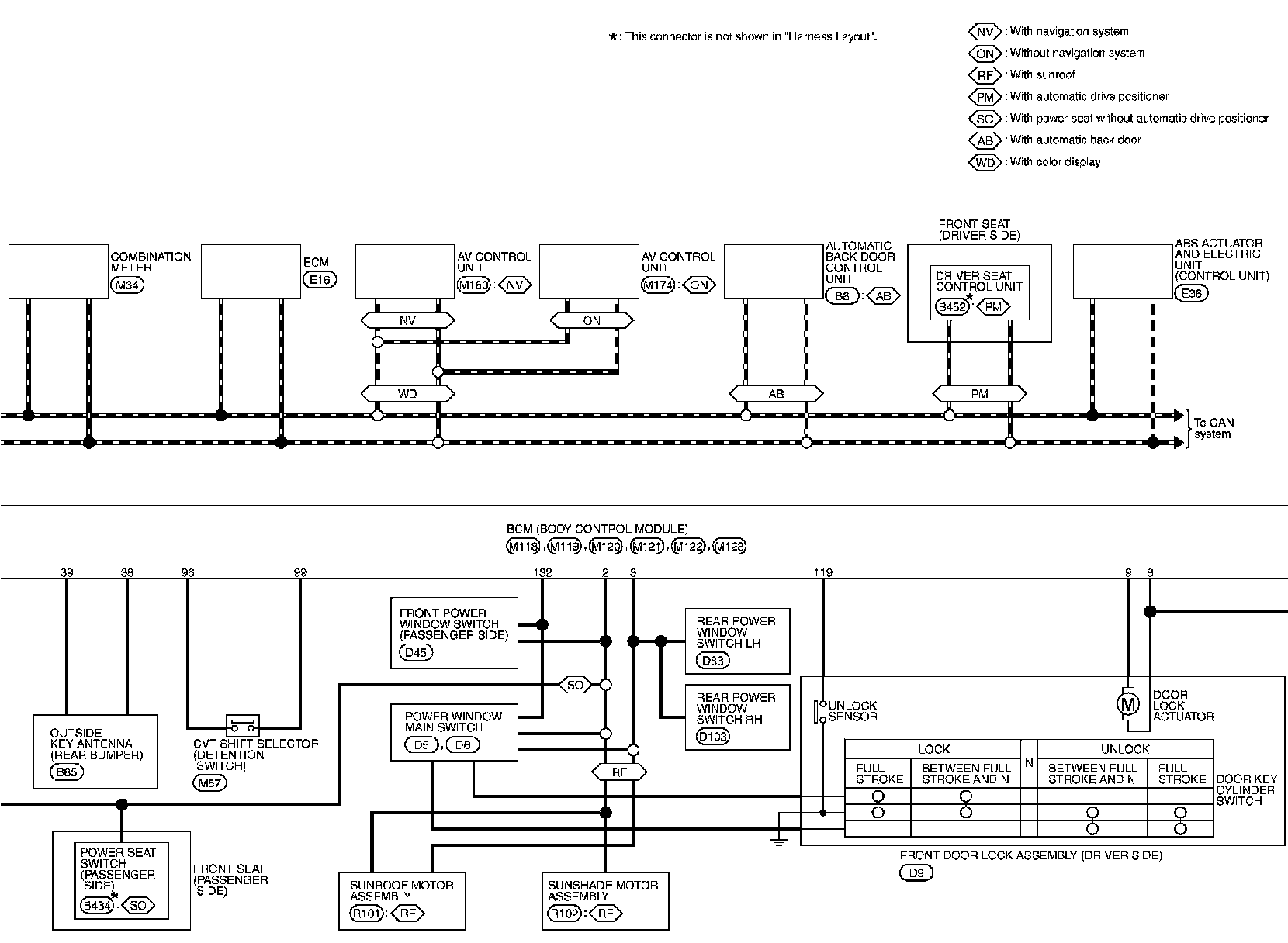 For connector terminal arrangements, harness layouts, and alphabets in a (option abbreviation; if not described in wiring diagram),