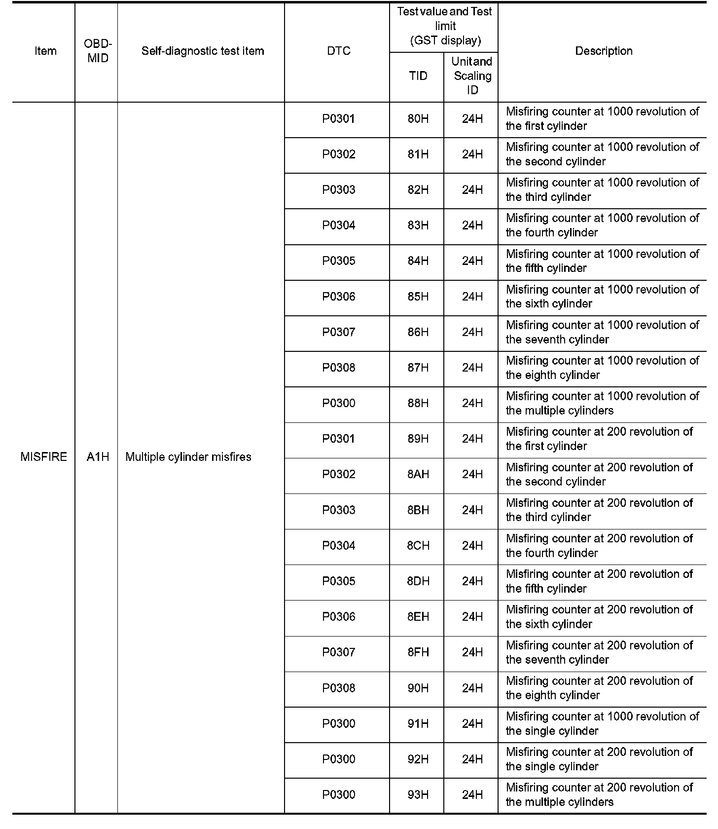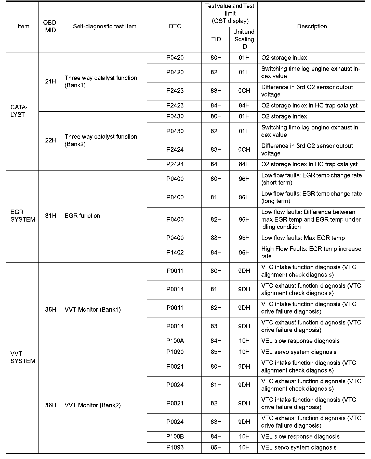 These data (test value and test limit) are specified by On Board Monitor ID (OBDMID), Test ID (TID), Unit and