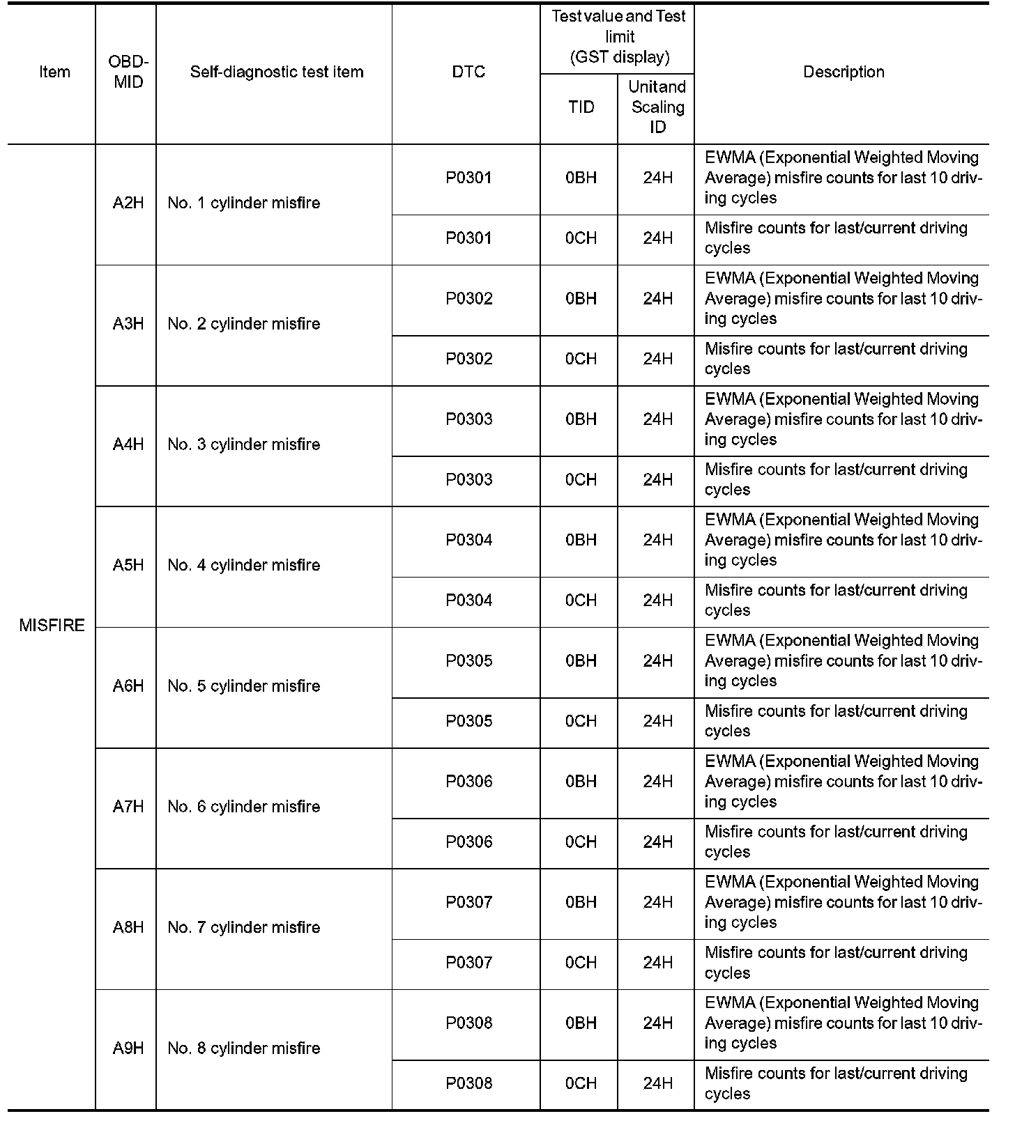The following is the information specified in Service $06 of SAE J1979/ISO 15031-5.