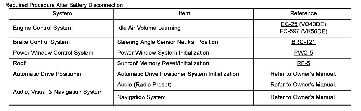 ADDITIONAL SERVICE WHEN REMOVING BATTERY NEGATIVE TERMINAL : Special Repair Requirement