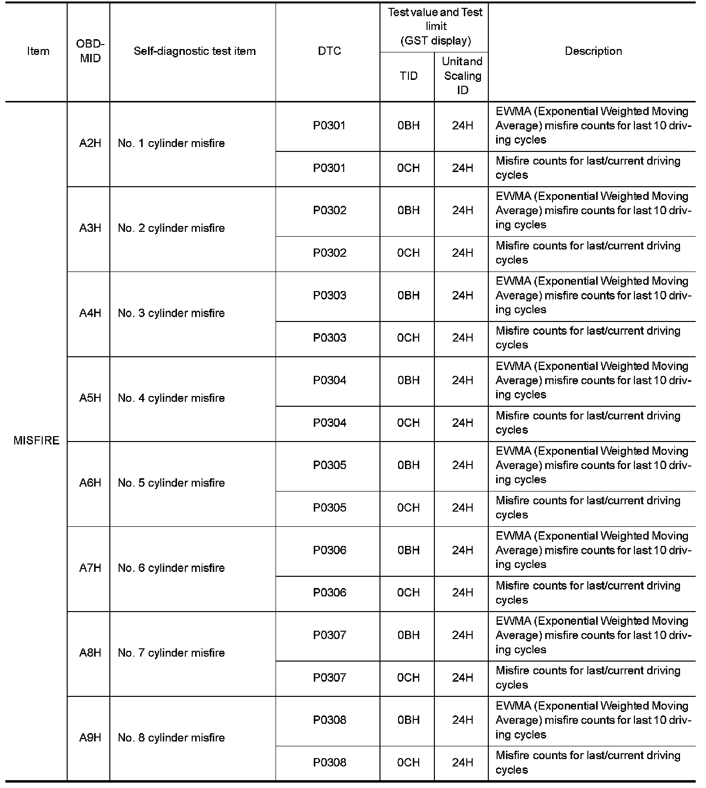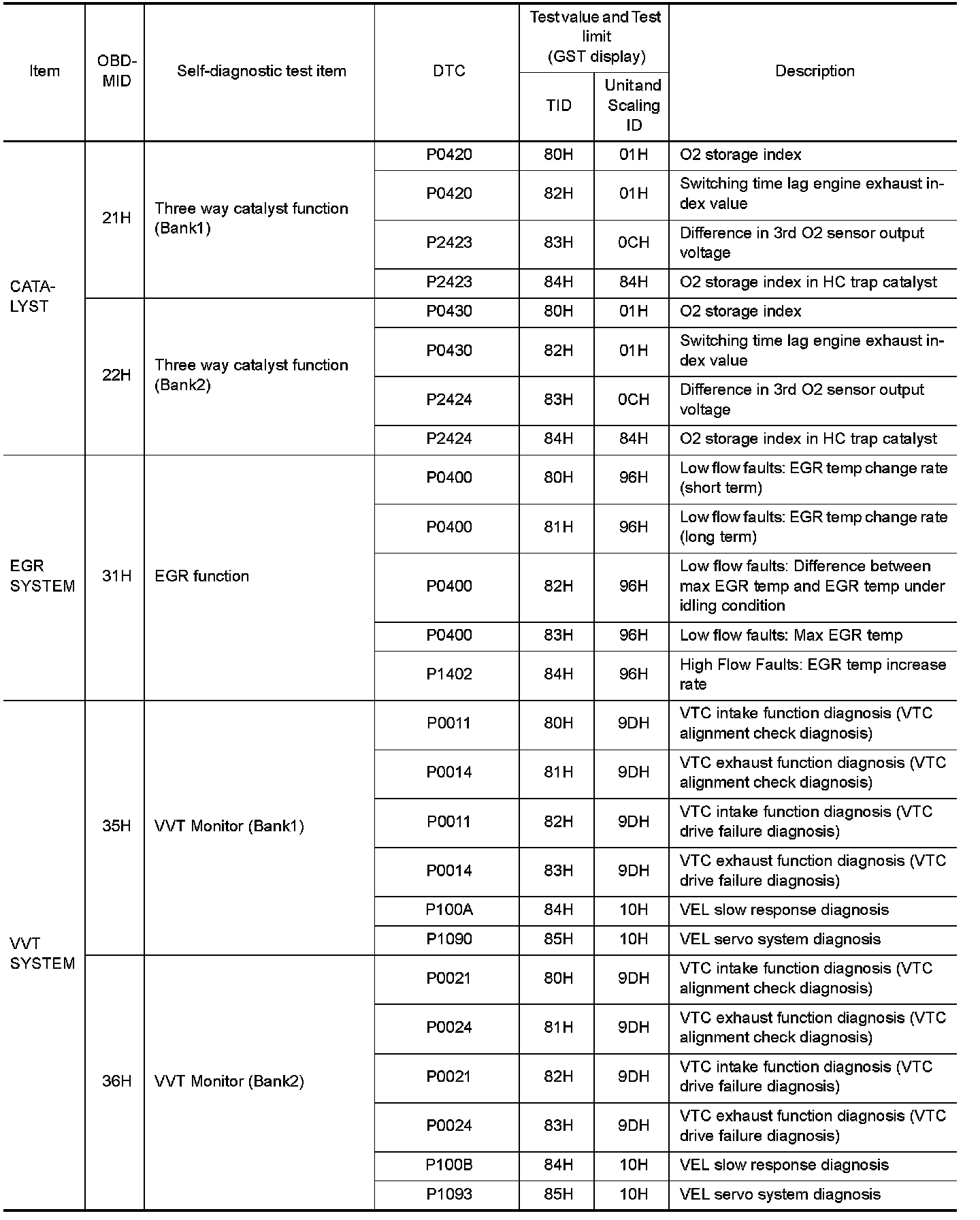 These data (test value and test limit) are specified by On Board Monitor ID (OBDMID), Test ID (TID), Unit and