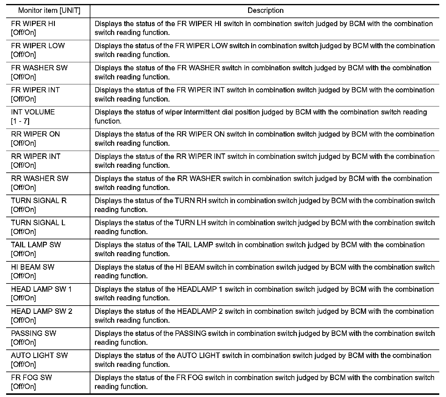 COMB SW : CONSULT Function (BCM - COMB SW)