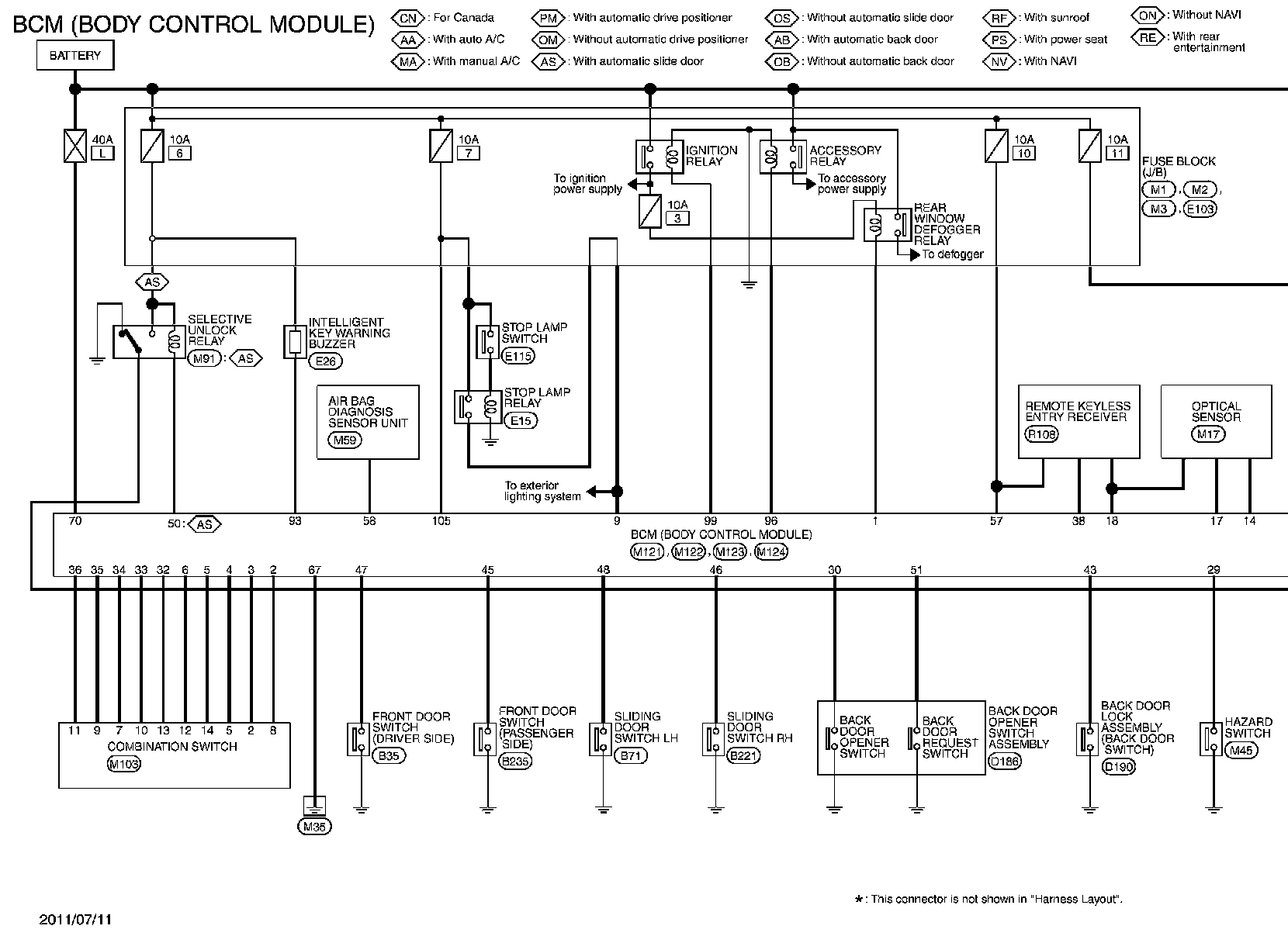 For connector terminal arrangements, harness layouts, and alphabets in a (option abbreviation; if not described in wiring diagram),