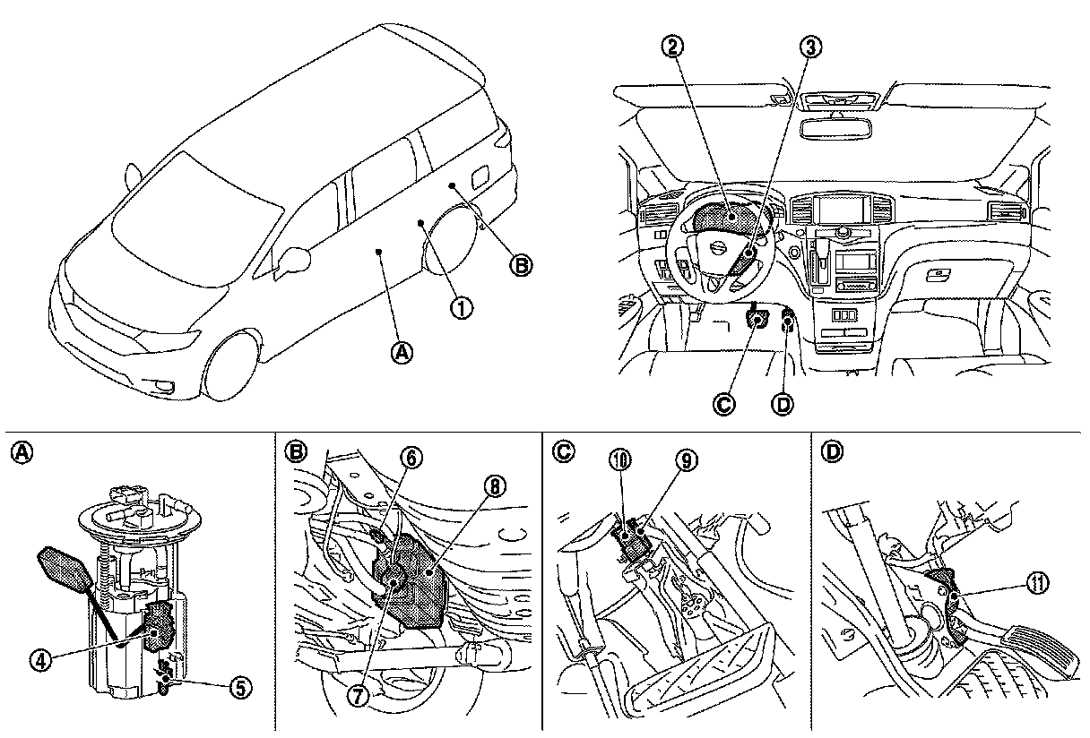 ENGINE CONTROL SYSTEM : Component Parts Location
