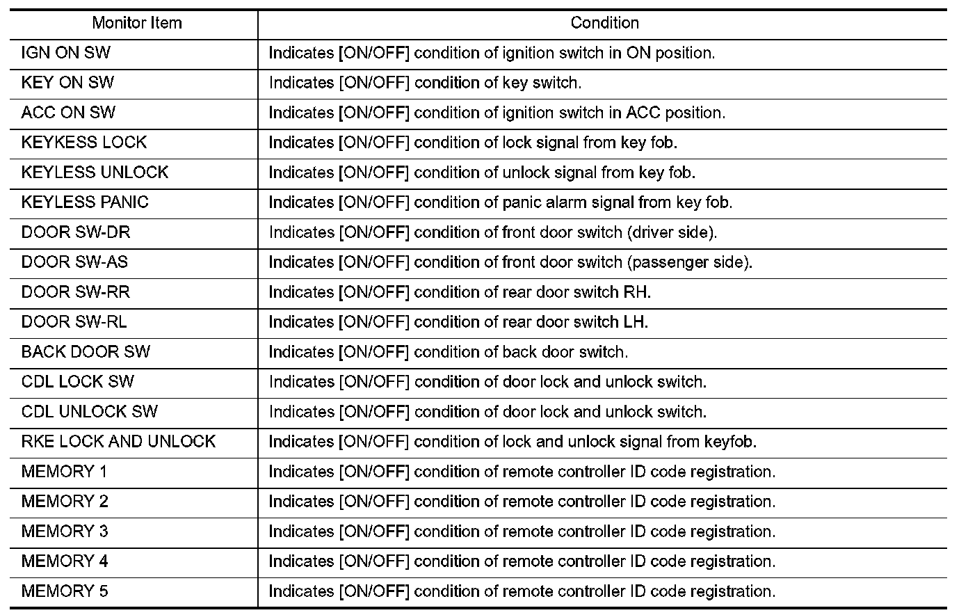 CONSULT performs the following functions via CAN communication with BCM.