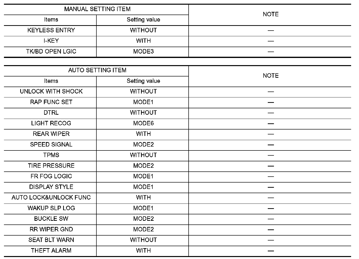Thoroughly read and understand the vehicle specification. ECU control may not operate normally if the setting is not correct.
