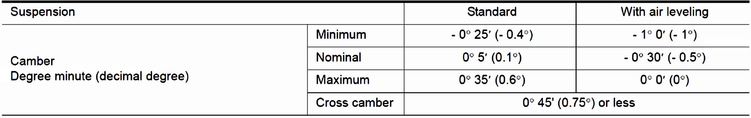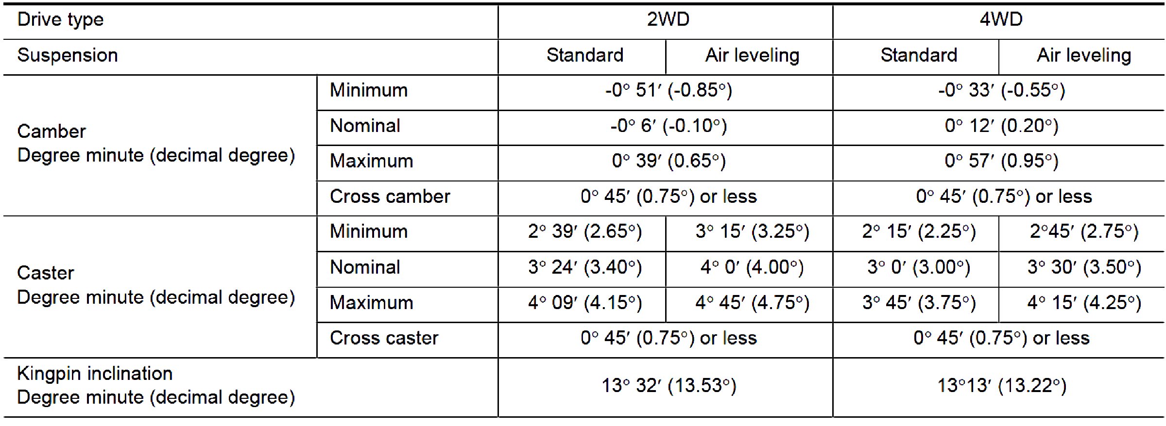 Wheel Alignment Specifications