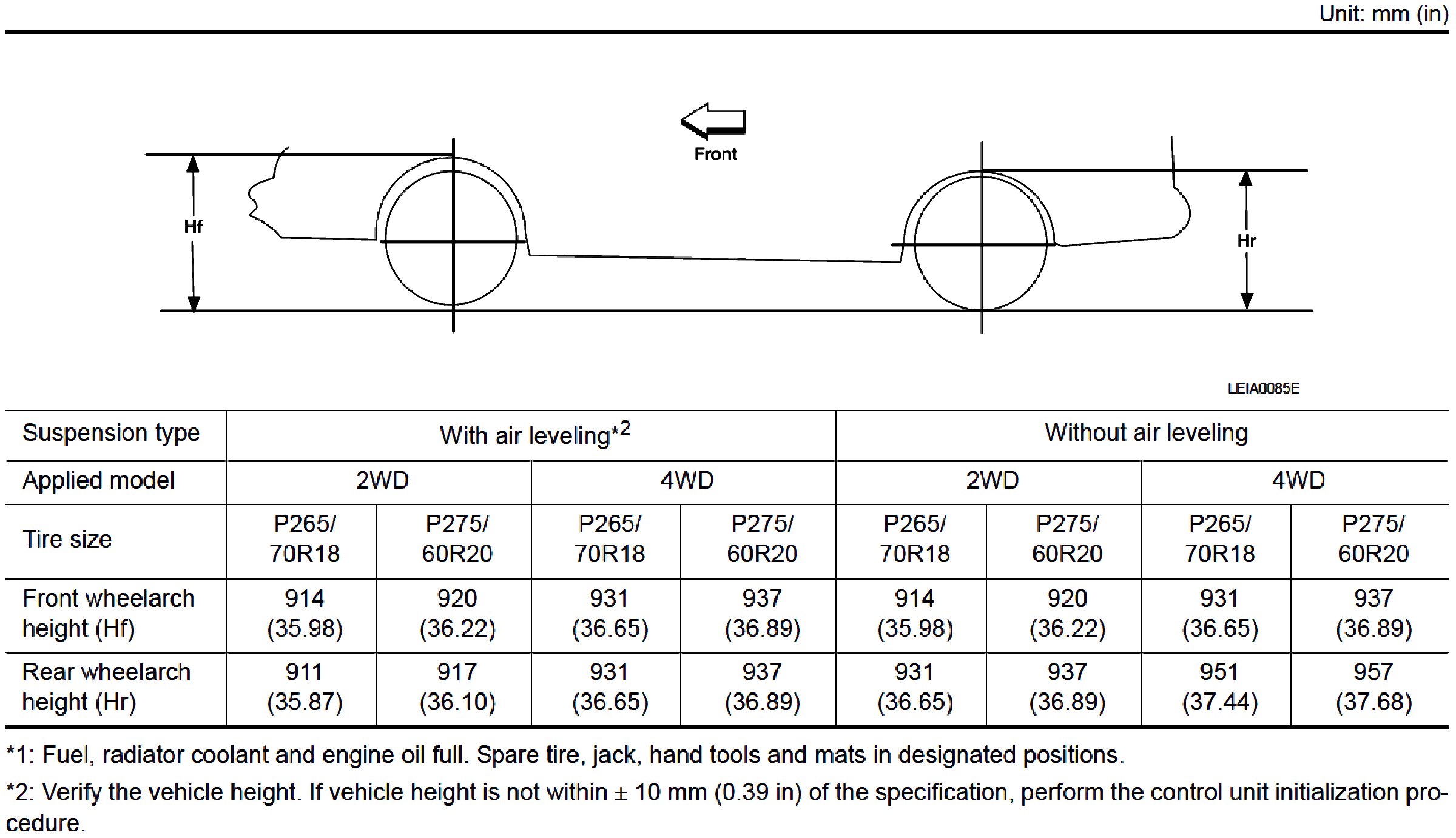 Wheel Arch Height (Unladen *1):