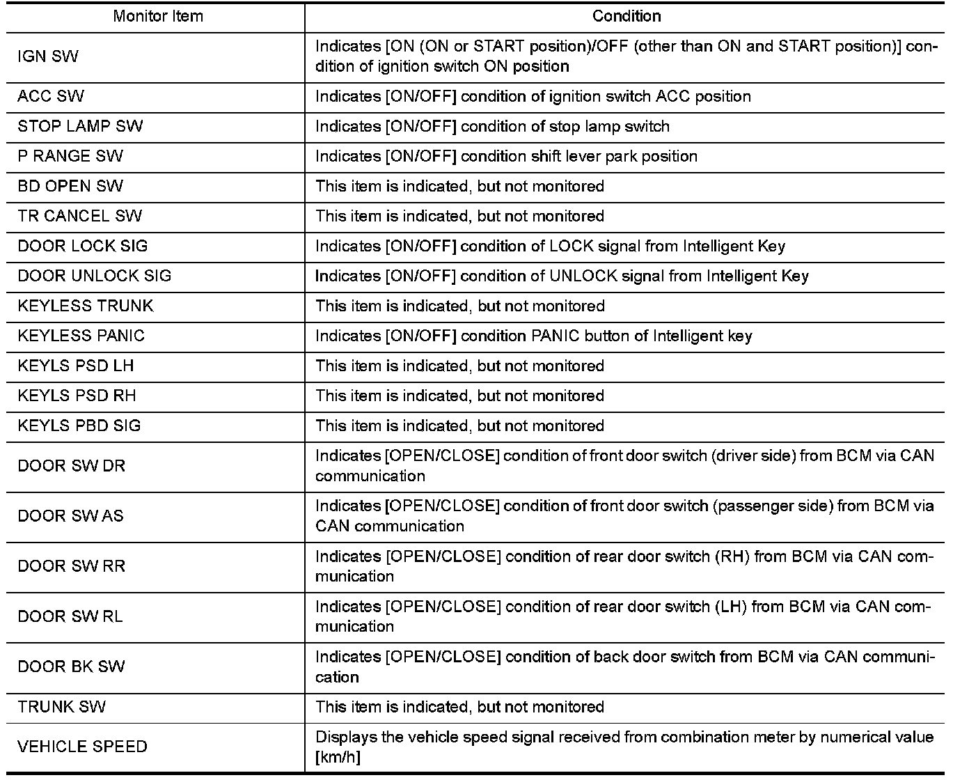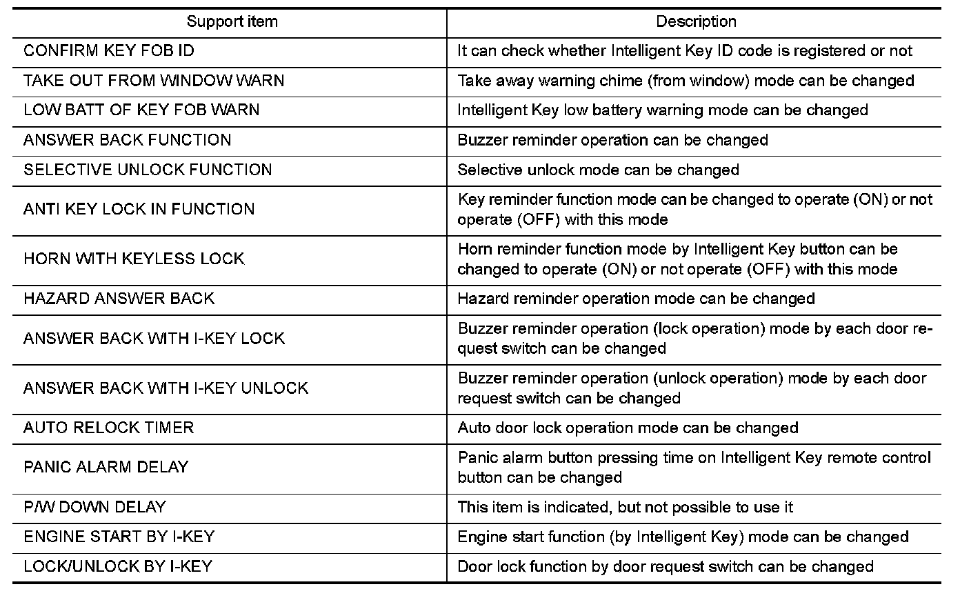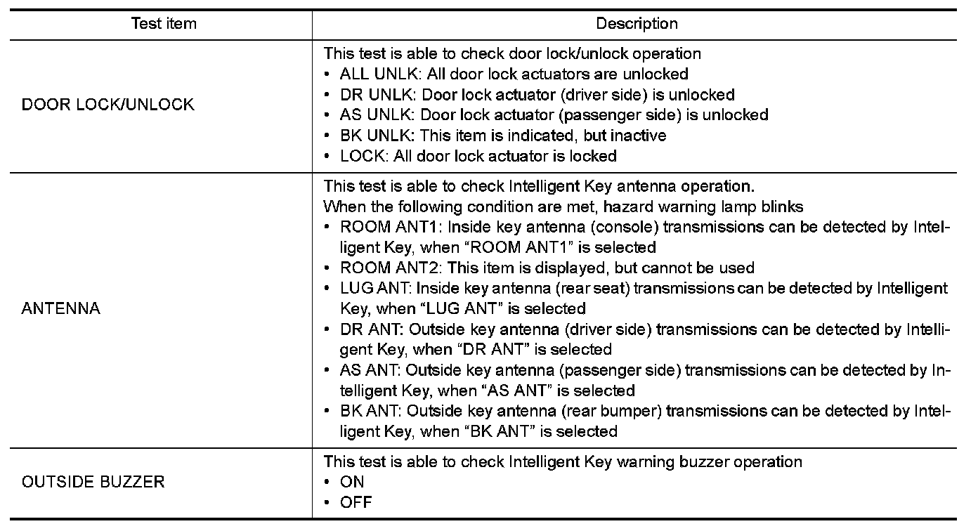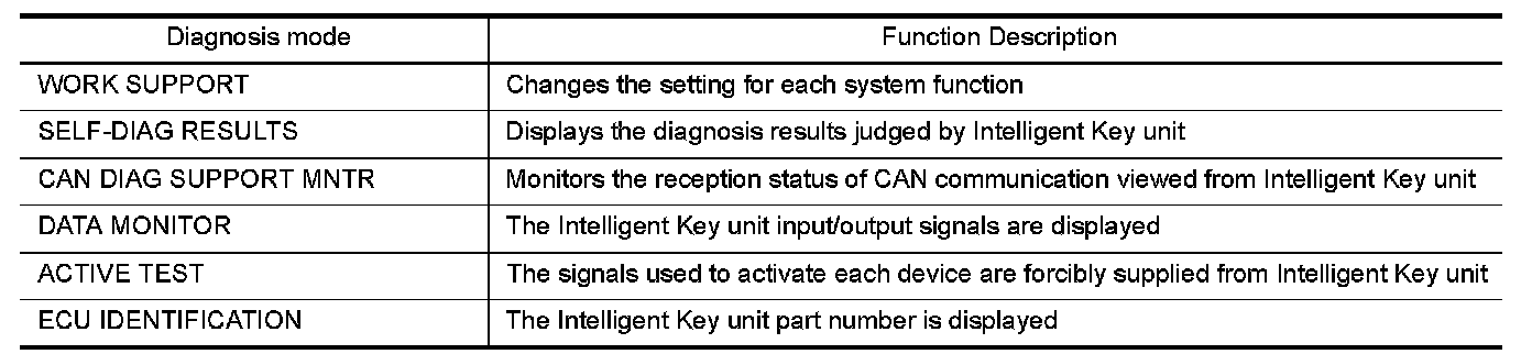 CONSULT performs the following functions via CAN communication with Intelligent Key unit.