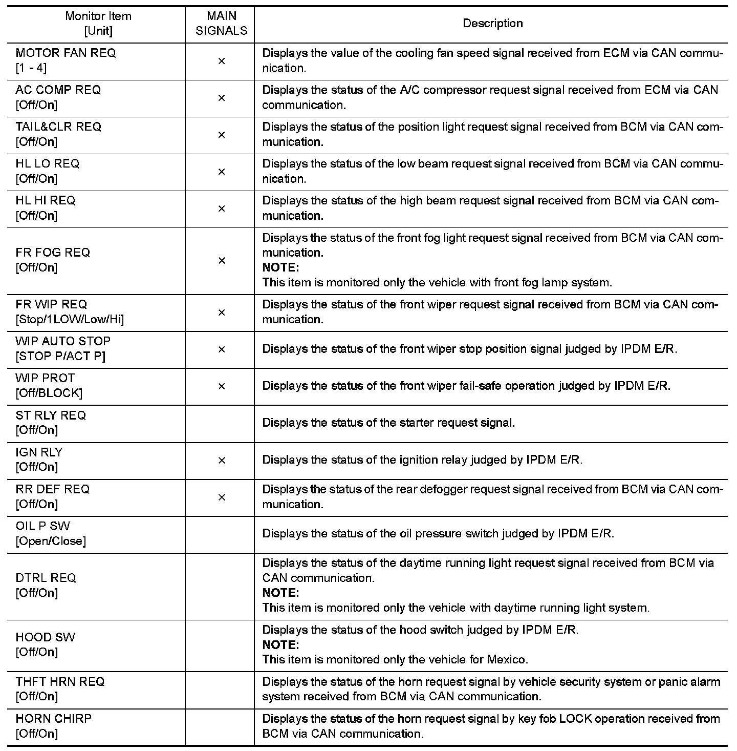 CONSULT performs the following functions via CAN communication with IPDM E/R.