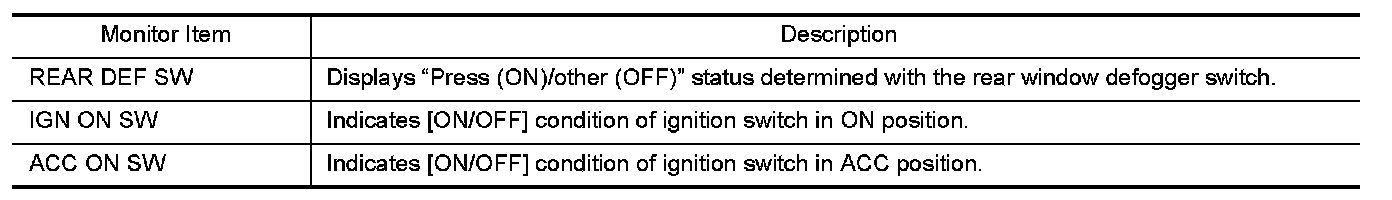 REAR WINDOW DEFOGGER : CONSULT Function (
