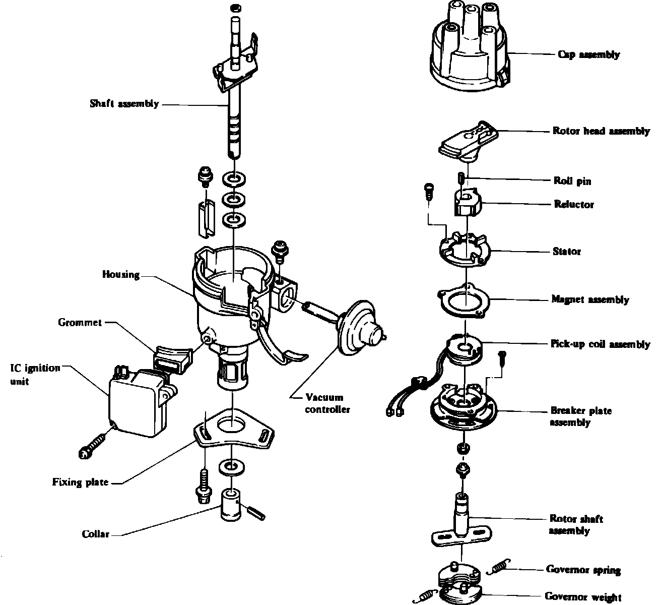 Fig. 11 Exploded view of IC type distributor with external IC unit (typical):