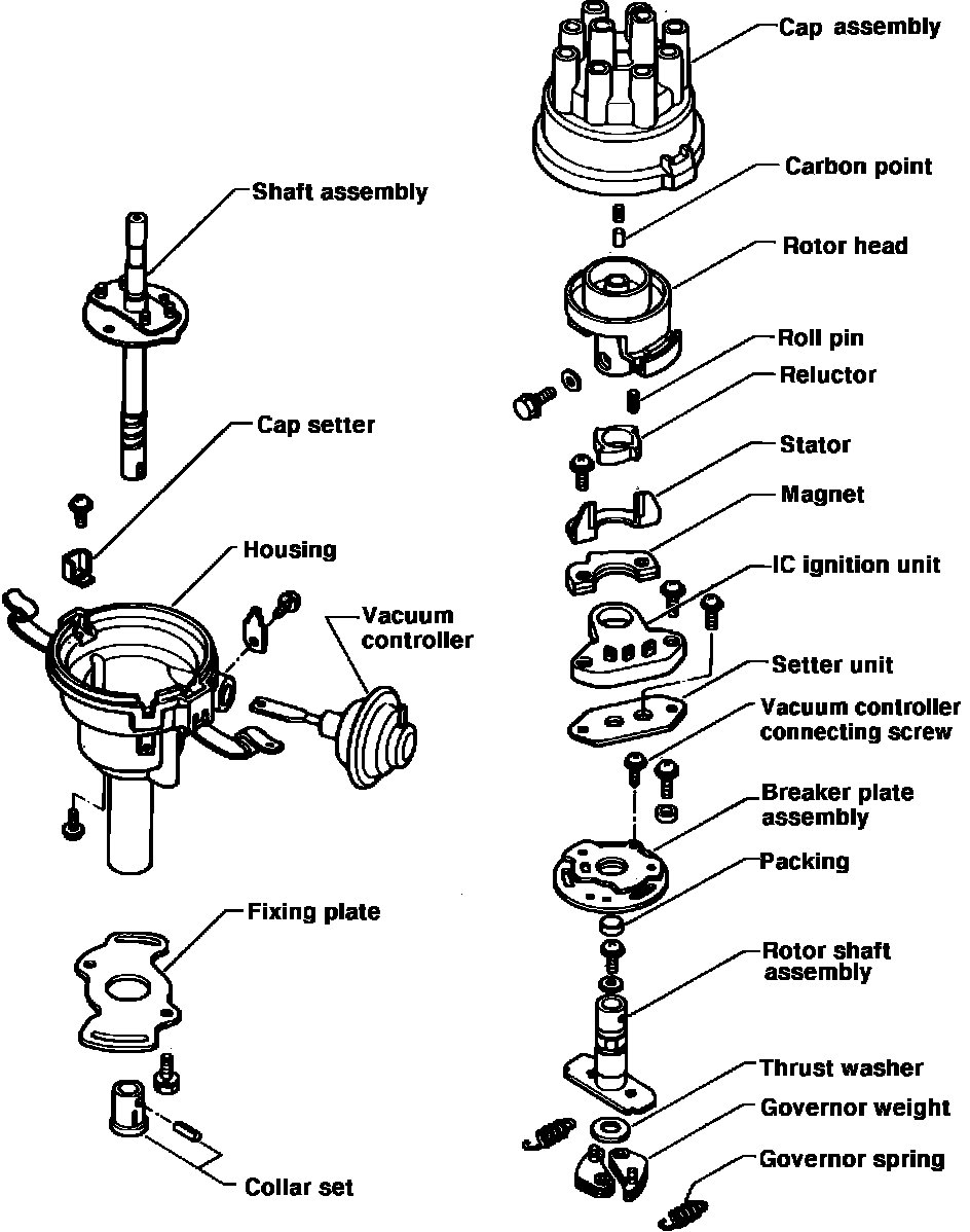 Fig. 12 Exploded view of IC type distributor with internal IC unit (typical):