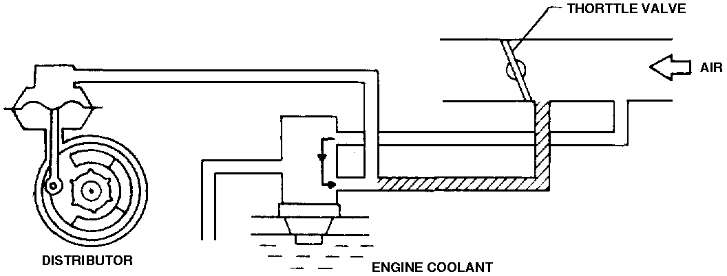 Note: When coolant temperature is below 95° F., or the throttle valve is closed, spark timing is advanced electrically.